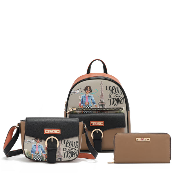 CONJUNTO DE 3 PIEZAS (MOCHILA, BANDOLERA, CARTERA) (BEST SMILE)