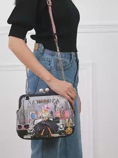 - Il design frontale è impreziosito da strass, borchie e rivetti.
