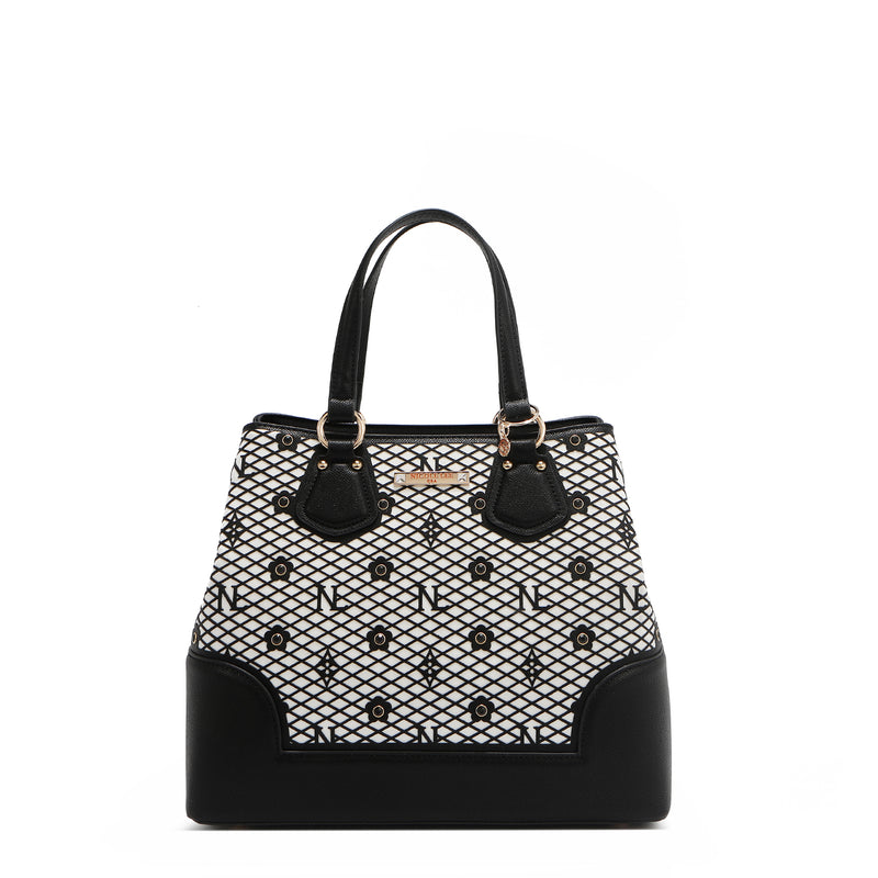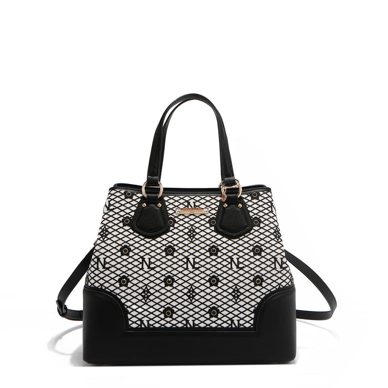 - Diseño calado con flores y monograma, adornado con pedrería tipo diamante