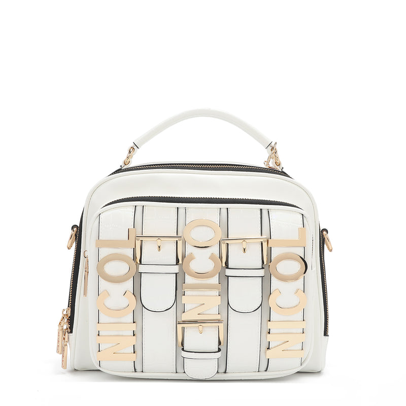- Correas con hebillas y diseño de hardware metálico con el logo