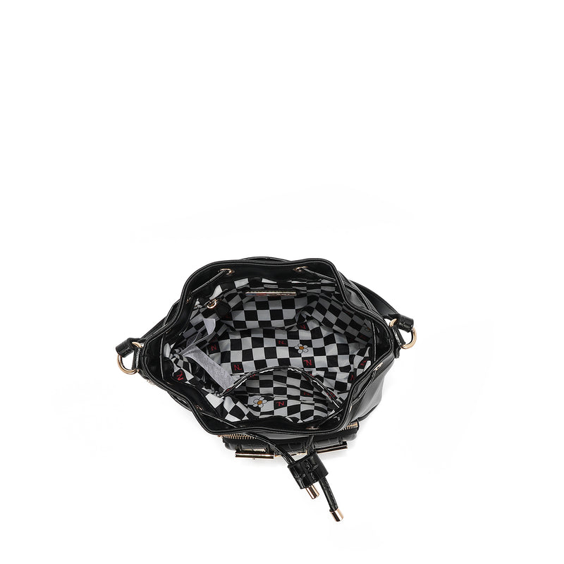 - Exterior de cuero vegano con detalles en croc falso