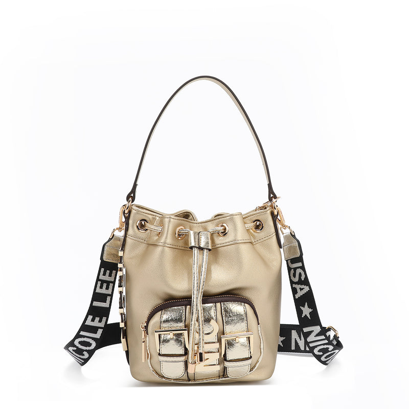 - Herrajes en tono dorado