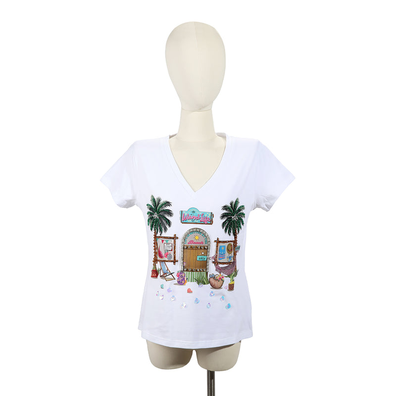 CAMISETA DE MODA CON CUELLO EN V (SUN & SAND)