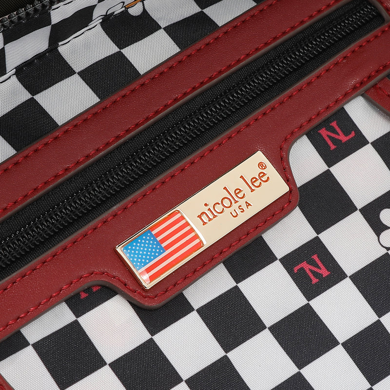 • Bolsillo interior trasero con cremallera y cinta para llaves