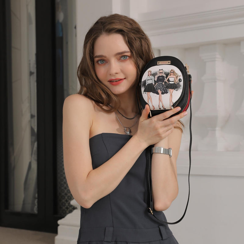 Nikky em tom dourado na frente - Anéis nas laterais para prender uma alça transversal opcional